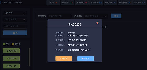 车队管理系统可对车辆进行全图监控,通过对完成运输的车辆进行“轨迹回放”,清楚地了解运输途中的里程完成度以及是否出现路线偏离等问题,以便更好地指导下一次的运输。