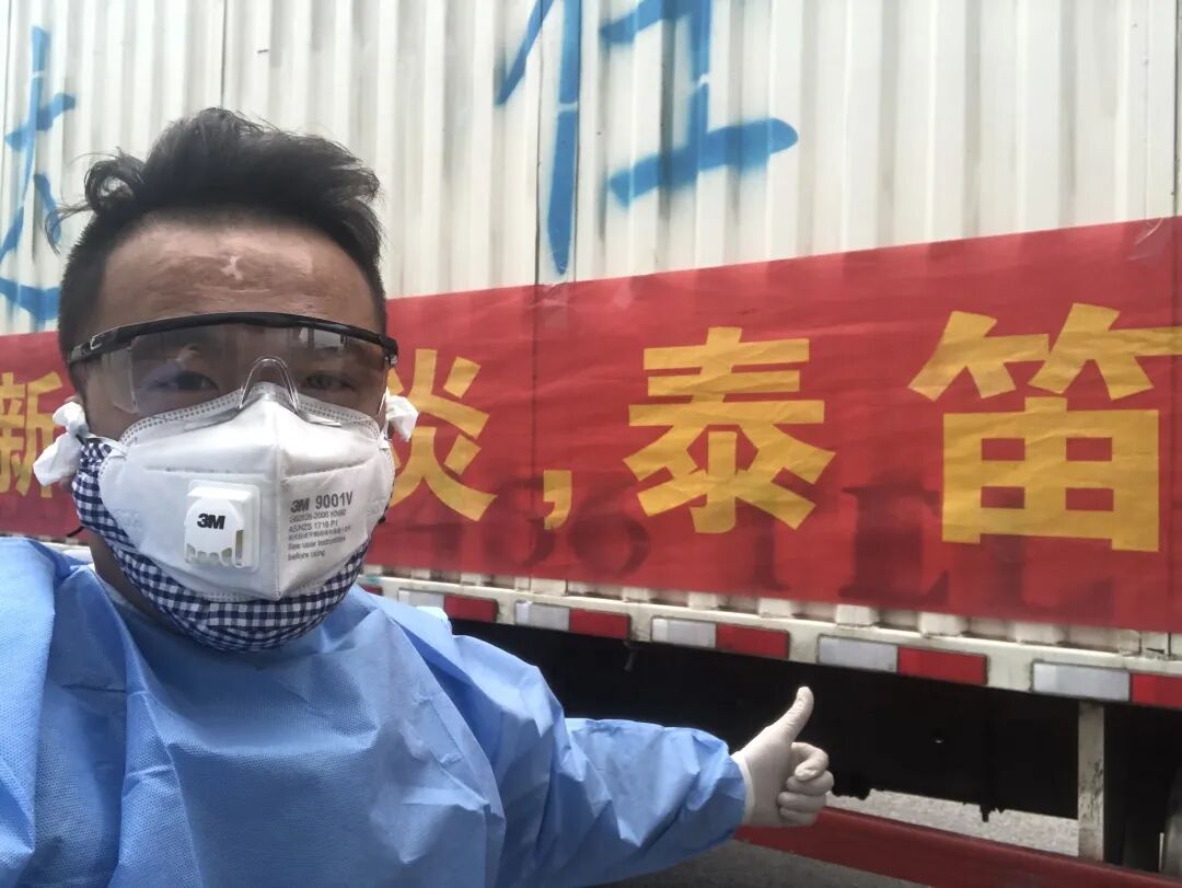 2月7日下午接到一批捐赠湖北医院的物资后, 程晓星连夜装车赶路,通宵赶了1100公里,次日下午便送达黄梅县人民医院。