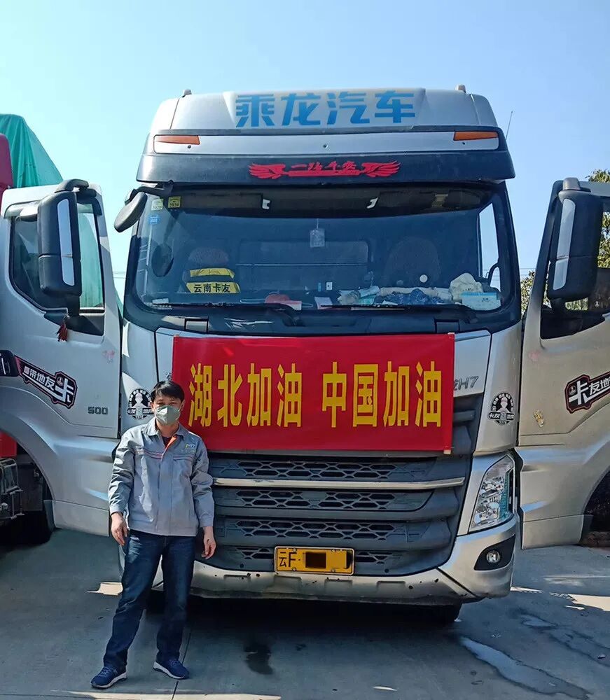 2月14日,党员司机李建国主动请战,2天驱车3400公里,战胜复杂路况与天气,将云南易门47吨爱心蔬菜送达湖北襄阳。