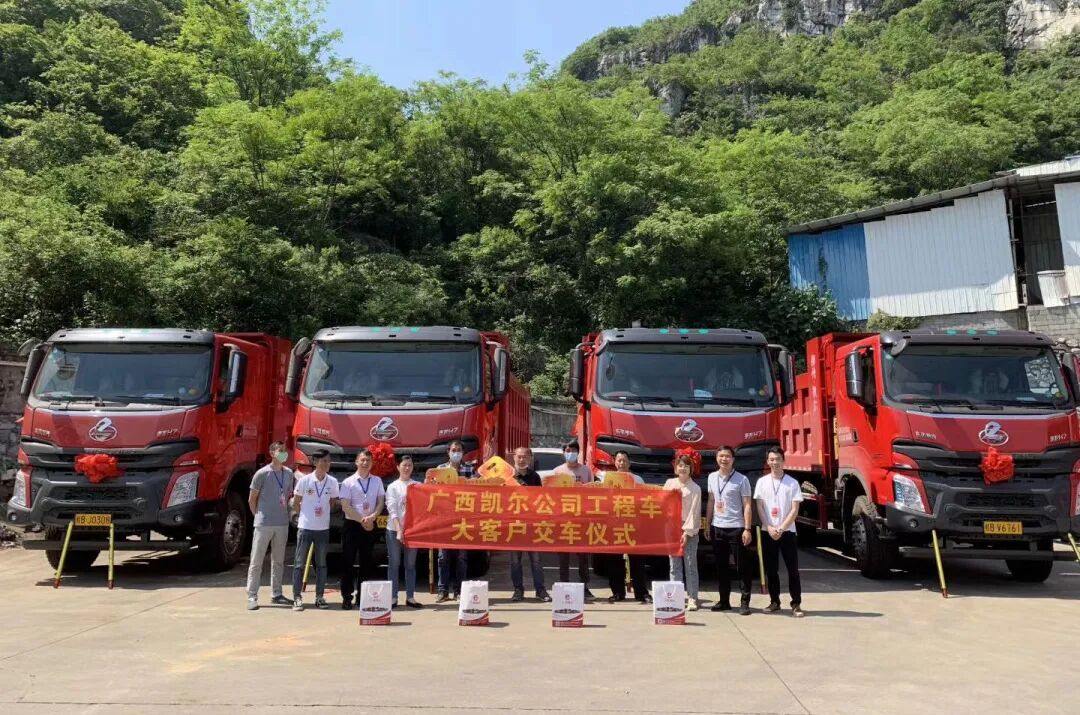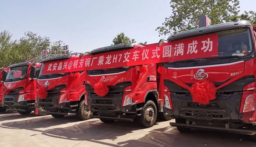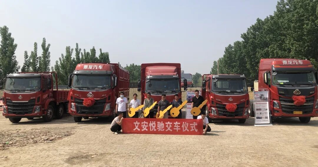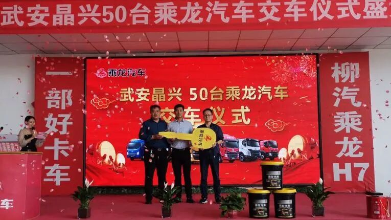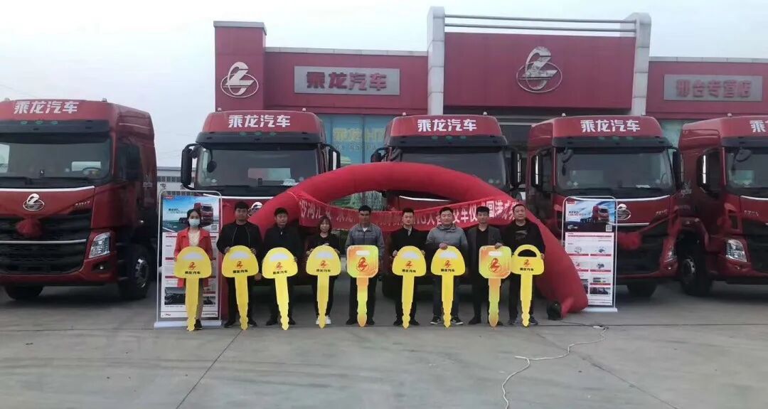 全国钜惠享不停”交车仪式上,乘龙天津勇瑞年交付天津松远物流80台乘龙H5牵引车。松远物流是长期从事化学物品、易燃物品等危险品运输的物流企业,对于车辆性能要求相当高。2016年东风柳汽与天津松远物流正式达成战略合作,乘龙为长期专注于危险品运输的松远物流提供了强大的车辆保障。 5月10日,乘龙武安晶兴向明芳钢厂交付50台乘龙H7工程车。交车仪式上,经销商不仅为车辆进行了全面的售前检查,还就车辆使用操作及售后保养注意事项与客户进行全面的讲解,确保客户使用车辆顺利无忧。 全国各地经销商紧抓机遇、乘势而上,创造了线下交车仪式的火热场景。 在热烈的气氛中,象征财富的金钥匙,是用户对乘龙及经销商的信赖,而信赖源于乘龙的可靠品质和优质服务。 月销过万,势不可挡 4月,乘龙以有目共睹的优异成绩,展现出在商用车行业的硬实力。进入5月,“月销万辆选乘龙,全国钜惠享不停”的主题活动全面铺开,持续为客户带来好车好礼。全国各地经销商势不可挡,创新联动,面对新一轮的挑战与机会,乘龙将奋力而战,再越高峰,以多形式的终端活动,为客户带来好产品的同时,更为行业注入蓬勃发展的正能量!