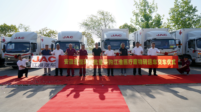 5月6日,10辆江淮轻卡医疗废物转运车在江淮专用车公司正式交付安徽浩悦环境科技有限责任公司。江淮轻型商用车营销公司总经理助理陈哲冰,江淮轻型商用车制造公司副总经理、江淮专用车公司总经理张时忠,安徽浩悦环境科技有限责任公司副总经理高巍以及相关人员参加交车仪式。即日起,10辆“抗疫1号”医疗废物转运车驶向抗疫一线,为疫情常态化防控贡献力量。