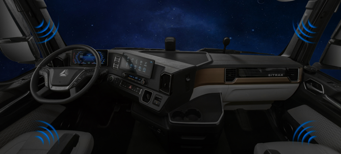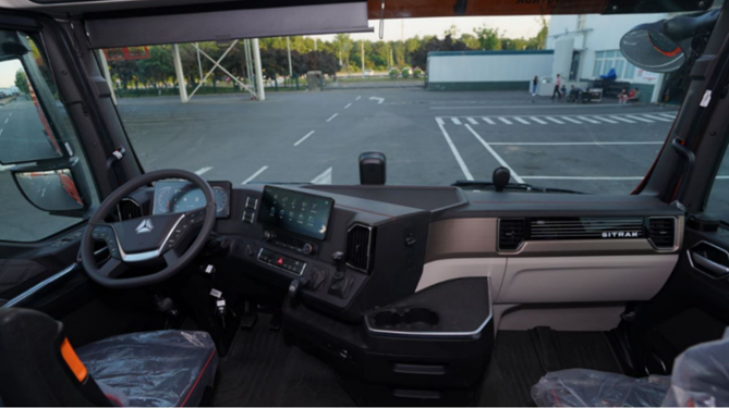 在舒适性方面,汕德卡G7S采用乘用车级豪华内饰,主驾座椅采用气囊减震设计,减少长时间行车的疲劳感;全新扁平化、环抱式仪表台设计,带来更佳视野,方向盘模块化升级,操控更方便,人机工程升级,带来更人性化驾乘体验;驾驶室NVH优化升级,噪声降至52分贝;12.3寸智能中控屏,语音交互,夜间氛围灯,四声道高品质音响等精细配置,用至臻品质回馈货运人的辛勤与勇毅。