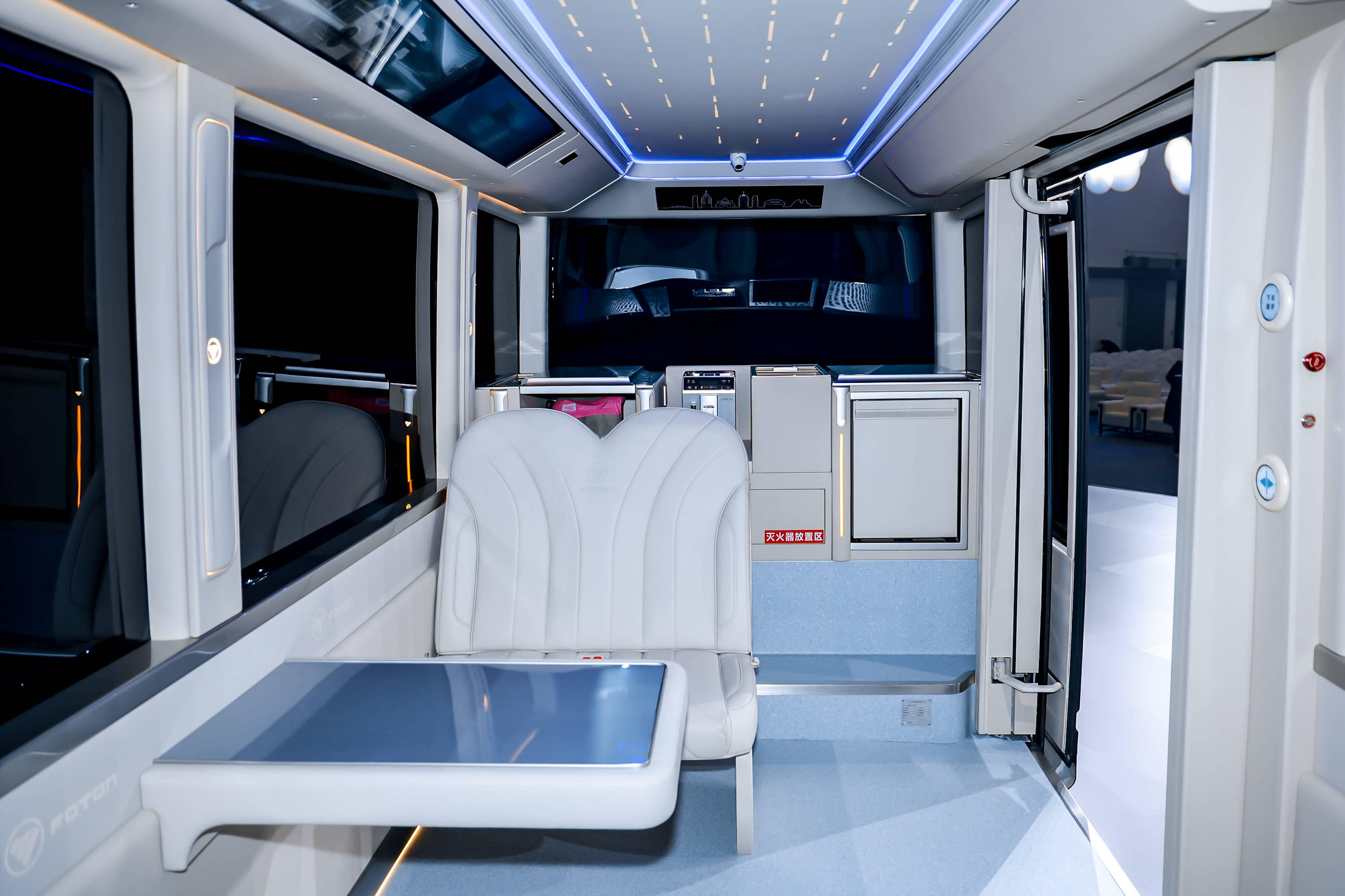 场景适配方面,福田欧辉智能巴士打破传统商用车功能边界,在企业园区、景区、机场航站楼等封闭场景创新无驾驶位、无方向盘布局,无需上牌即可快速投入运营;车内会客厅式设计,完美适配商务接待、通勤洽谈等需求。