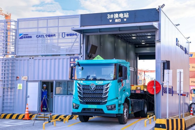 作为专业化、定制化绿色运力装备,欧曼银河5M换电港口车集多项领先技术于一身,以高效换电、低能耗制动、舒适操控等“硬核”产品力,高度适配港口运输场景需求,赋能盐田港乃至整个港口运输行业降本增效价值。