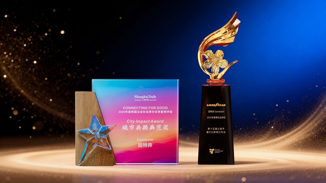 中国上海,2026年1月23日 —— 凭借“让未来更美好”梦想夏令营项目以及在社区参与方面的长期深耕,固特异近期荣获《上海日报》“2025年度优秀跨国企业社会责任案例”之城市共振典范奖,以及第十五届公益节2025年度责任品牌奖。