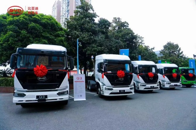 比亚迪纯电牵引车Q3搭载刀片电池,助力物流安全更上层楼;双电机峰值功率600kW,重载爬坡强劲;轻量化整车低至9250kg,较同级轻400kg;支持双枪快充,soc20%-80%最快约30分钟;标配DiLink智能网联、四方位影像与10项主动安全,兼顾高效、舒适与智能。 比亚迪纯电动自卸车T31专针对工程运输打造,强化重载底盘,最大爬坡度达40%;双枪快充保障高强度出勤,适配城建渣土、矿山短驳等工况,助力企业稳定出勤、降本增效。 现场物流企业反响热烈,多家负责人表示比亚迪重卡精准解决了动力、续航、自重等痛点,适配当地多山路况与高频运输需求。签约客户称,该车能耗更低、维保更省,长期运营效益显著,坚定“油转电”决心。 作为新能源商用车的引领者,比亚迪深耕纯电重卡领域,本次落地湖南,既是区域市场战略落地,也推动物流行业低碳转型。未来比亚迪将持续以技术与产品创新,为湖南及全国物流企业提供高效、安全、智能的绿色运力,共筑零碳物流新生态。