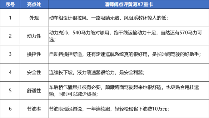 在最后,两位潘师傅也跟我们总结了一份这半年来对黄河X7重卡的一路驾驶心得。