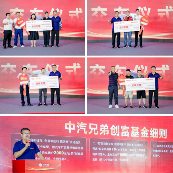 中汽兄弟创富基金联合南京依维柯、美丰加蓝、上汽红岩、宇通轻卡、欧航欧马可、福田戴姆勒,通过更好的产品与服务,为湖南地区卡友营运助力。