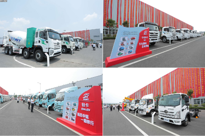 庆典结束,与会嘉宾共同品鉴了涵盖中重卡、轻卡、新能源等13个品类的127台展车。