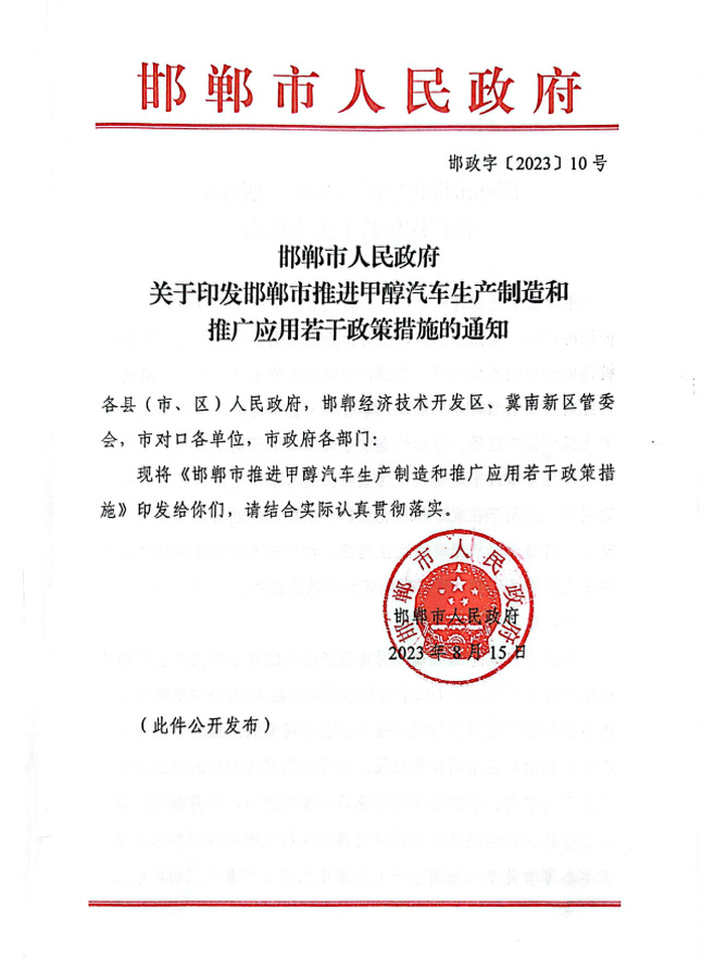 近日,邯郸市人民政府印发《邯郸市推进甲醇汽车生产制造和推广应用若干政策措施》(以下简称《措施》),提出了加快全市甲醇汽车生产制造和推广应用的一系列措施,为打造千亿级甲醇产业生态圈,加快全市工业经济转型升级和绿色低碳高质量发展提供重要支撑。此次发布的《措施》,为邯郸打造甲醇生态创新发展模式提供目标指引,也为全国各地甲醇生态建设提供有益参考。