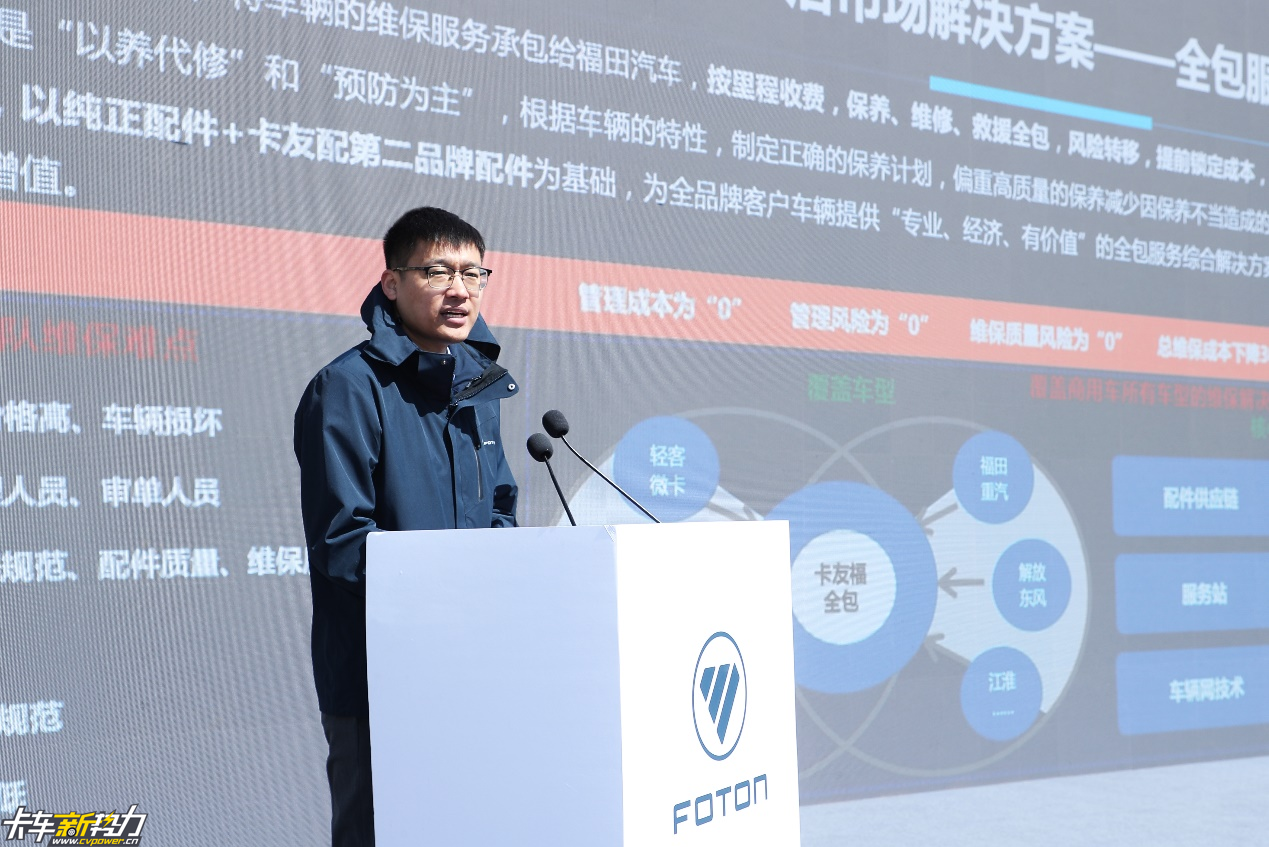 在后市场方面,福田汽车后市场生态事业部高级经理刘博表示,当前物流行业客户在车辆能耗、安全运营、二手车处理、管理成本等多方面存在难点。福田汽车依据用户痛点和难点,提出从买车、用车、管车、养车到换车的全生命周期一体化解决方案。针对“油换电”产品,提供会享福二手车快速置换,为用户提供高效率、高溢价的二手车处置方案。同时福田汽车的车队管理系统为客户提供“车联网+物流一体化解决方案”,提高物流运输效率,降低车辆事故率,降低能耗成本。客户也可将车辆的维保服务承包给福田汽车,依托厂家技术、服务站网络、车联网辅助管理等优势,以纯正配件+卡友配第二品牌配件为基础,为客户“专业、经济、有价值”的全包服务综合解决方案,实现管理降成本、维修质量和管理风险受控。
