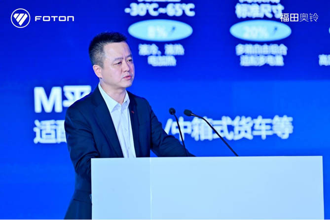 随后,奥铃市场与商品规划副总裁陈岩对奥铃智蓝EM进行了详细解读。陈岩表示,“聚焦市场需求,奥铃智蓝EM定位‘全路况 全场景 全价值’,致力于为用户带来TCO更佳的全新城配物流解决方案,将为城市发展进一步注入绿色动力。”