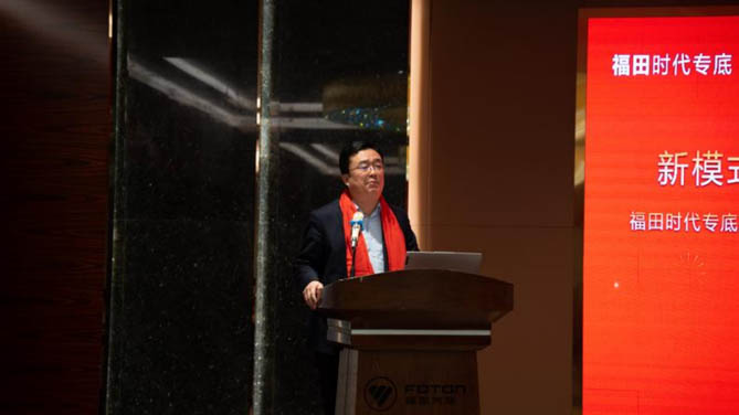 福田时代专底济宁区域中心总监孙运尚主持会议,并向参会代表分享专用车市场运行情况,表示福田时代专底将与各位合作伙伴擎举创赢梦想,携手勇闯发展新路,定目标、抓行动,共创共赢。