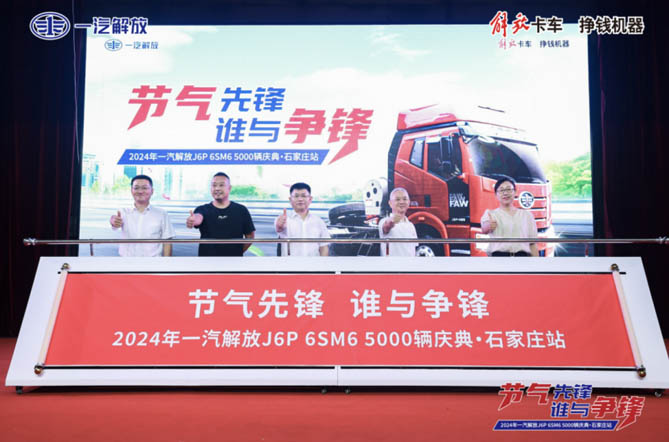 2024年8月20日,以“节气先锋 谁与争锋”为主题的一汽解放J6P 6SM6 5000辆达成庆典,在石家庄隆重召开。一汽解放营销总部副总经理,兼本部中重型车销售公司总经理,兼本部中重型车产品线副总经理张继伟、一汽解放河北地区部总经理许可、河北晨阳汽车贸易有限公司董事长陈立芝、河北晨阳汽车贸易有限公司总经理王晓红、终端客户代表张雪柱,以及来自石家庄地区的卡友伙伴200余人一同见证了这一历史时刻。