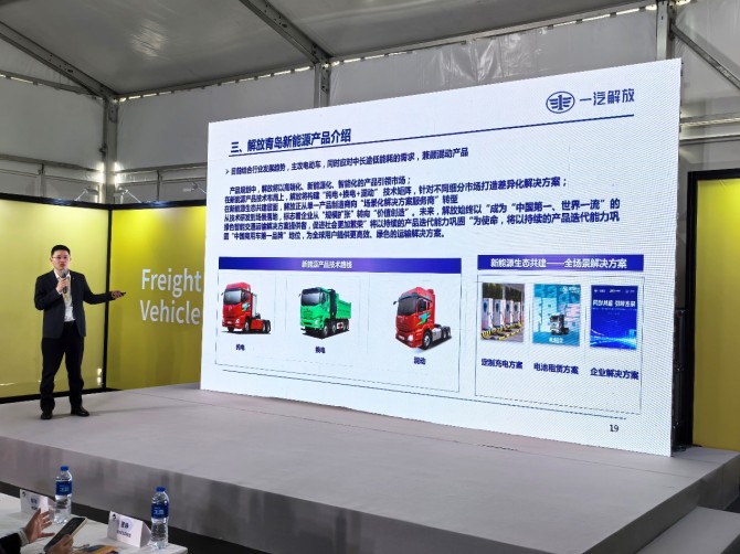 展会同期还举办两场专业论坛,为行业发展提供深度交流平台。在 “新能源物流车应用推广发展论坛” 上,一汽解放青岛中重型车营销中心客户开发与维护部部长李锟,就青汽新能源产品的技术优势、场景适应性及全生命周期价值向与会嘉宾做了精彩推介。