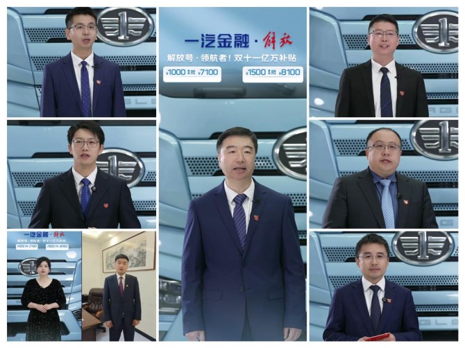 11月不仅是物流高峰,更是一汽解放的营销创新窗口。借助“双十一”契机,一汽解放与一汽租赁联合在抖音平台打造行业首个“双十一亿万补贴”直播盛典。以J7智能工厂为背景,5小时直播集中展示了一汽解放24款主力车型,叠加“三重补贴+专属金融礼遇”,当晚团购订单突破6000台,累计场观超27.6万人,峰值在线人数1.8万人,开创了中国商用车行业的营销新模式——商用车制造企业与金融服务企业首次在直播营销中深度融合,为行业开辟了一条直达用户的“快车道”。