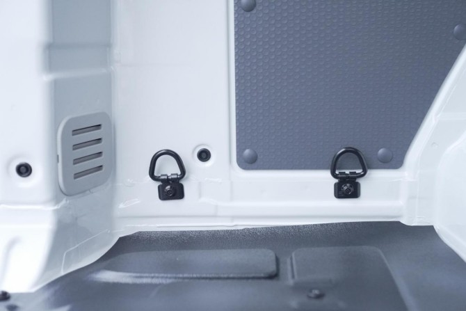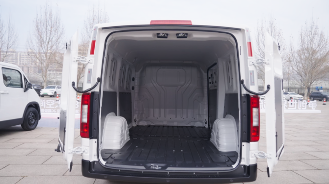它并非单纯地加大货箱(2.8米长、1.76米宽、1.45米高),而是精心设计了一套“低门槛、宽界面、全通畅”的装卸生态。尾门货台高度仅50厘米,侧滑门处更降至到了47厘米,这细微的几厘米降低,意味着每一次搬抬重物时,腰部承受的力矩被显著减小。