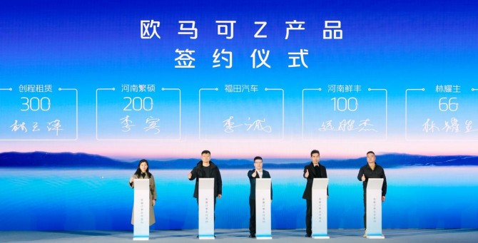 产品实力的背后,是市场的高度信赖。仪式现场,福田汽车先后完成欧马可Z、奥铃极电、卡文乐途三大品牌批量订单签约,总签约量达1682辆,彰显了启明星系列产品强大的市场竞争力。其中,欧马可Z产品合计签约666辆,签约客户覆盖经租、冷链、运营等多元场景;奥铃极电产品签约616辆,携手核心合作伙伴共拓绿色高效物流市场;卡文乐途产品签约400辆,与多家物流企业达成深度合作共识。此次签约是福田汽车与合作伙伴深化协同的重要成果,将为启明星产品规模化推广奠定坚实基础,助力绿色物流理念加速普及。