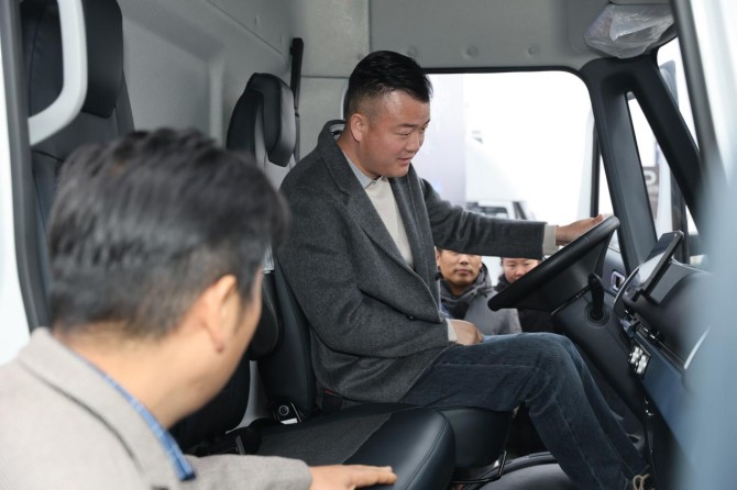 活动现场试驾体验环节,常年跑郑州跨区域干线运输的卡友李师傅坐进坤鹏ET9的驾驶室,瞬间被扑面而来的“大空间”惊艳到了。2170mm的行业最宽高顶平地板设计绝非噱头,1850mm的内高让身高178cm的他站在车内完全无需弯腰,左右移动、取放随车物品都格外自如,以往长途驾驶时在狭小空间里的憋屈感不复存在。