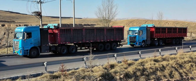 除此之外,车辆的灵活性也精准适配厂区装卸货场景。宁东镇煤炭装卸货区域通道狭窄、货位密集,对车辆转弯半径要求极高,欧曼银河5M纯电重卡凭借小巧的转弯半径,让司机在穿梭、掉头、停靠时得心应手,大幅压缩装卸货耗时,进一步提升整体运输周转效率。