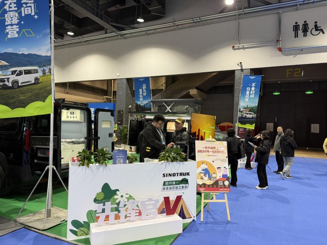 展会首日,中国重汽轻型汽车展台便成为全场焦点之一。全新宿营车的集体亮相吸引了大量观众驻足围观,展台内人流如潮,咨询洽谈者络绎不绝。不少观众第一时间了解车型配置,坐进车内亲身感受,现场气氛热烈。