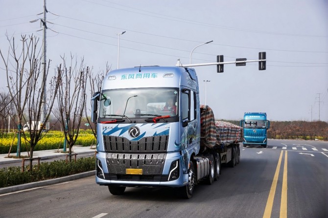 此次实况试驾选取典型国道路段,全程约10公里,往返试驾时长45分钟,高度贴近卡友日常运营实况。参与实测的四款车型均为东风天龙新KL车型,其中两款燃油车型搭载龙擎DDi13 600马力发动机与龙擎DA12智能变速箱;另两款燃气车型则分别搭载龙擎DGi13-540马力发动机和Z15N-580马力发动机,均匹配龙擎DA12智能变速箱。