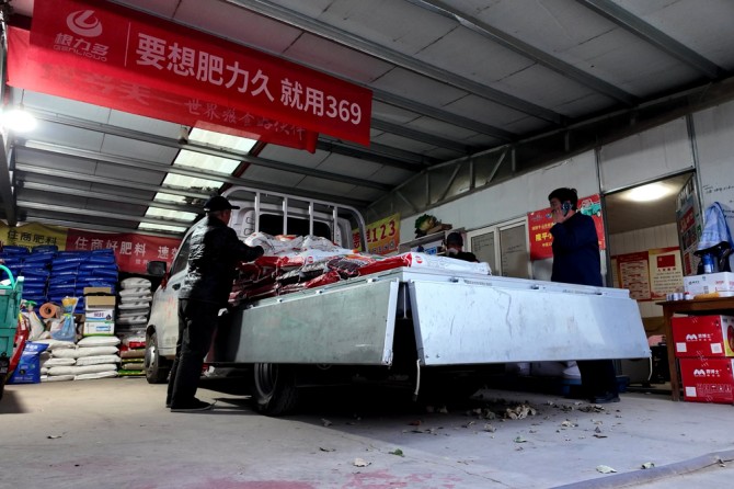 徐增来的生意半径,大约在方圆二十公里。这片区域多是蜿蜒起伏的乡道,甚至田间地头。他的货物是实打实的重量:化肥、尿素,一袋百八十斤。最多时,他要一次拉上四十袋,足足两吨,在车厢里“堆得老高”。这对任何一辆微卡都是严峻考验。