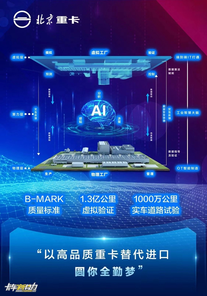 高质量、低成本是消费者永恒的追求,然而,成本与品质这对冤家之间的相悖却是一直都难以攻克的难题。敢于在如今的行业环境下高调出道的北汽重卡就从最难啃的骨头下手,以传统车企之身拥抱元宇宙,以独特的数字孪生数智工厂进行科技赋能,在建厂之初就为工厂建立一个数字孪生体,以虚拟实,完全打通从生产端、产品端到销售端再到用户端的壁垒,极高的用户反馈效率、高效的内部管理机制外加合理的排产规划,依靠智慧赋能新玩法成功破解成本难题。