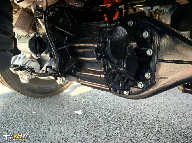 传统轻卡驾驶室前部还保留有压缩机等配置,底部发动机部位会布置电控系统,而福田启明星的电驱桥集成了电控系统,其他配件也都布局在底盘两侧,充分利用了前部的有效空间,进行了更为科学和人性化的设计。