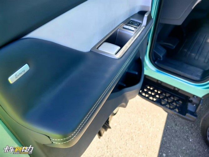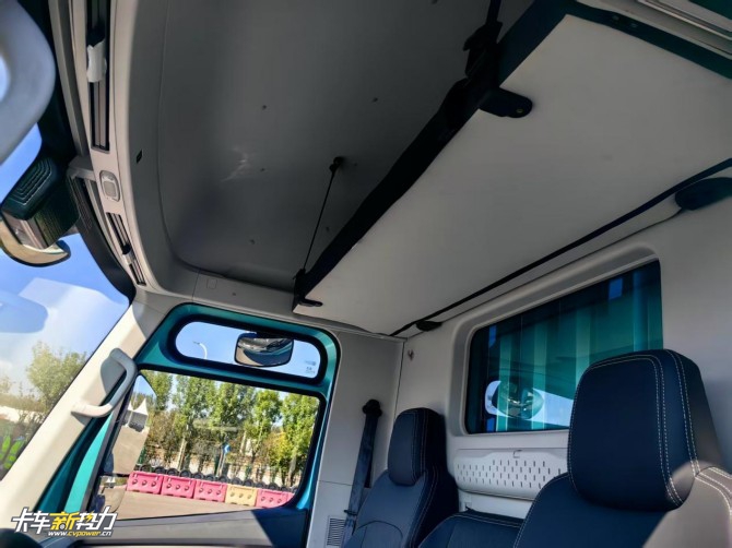 另一个好处就是驾驶室的空间更大,福田启明星采用了低入口驾驶室设计,其首创的一级踏板与地面高度仅为0.47米,标准版驾驶室内高1.8米,高顶版内高提升至2.26米,配合2.12米的宽体结构,打造远超传统轻卡的内部大空间,真正实现“上车不费力、站立不低头、躺平不蜷腿”的舒适体验。
